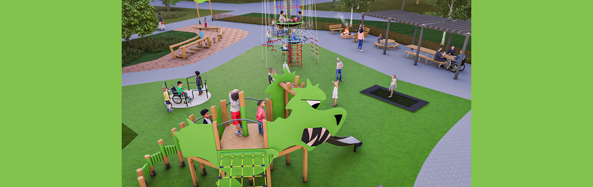 En helt ny lekutrustning kommer att byggas i Bäckparken som förvandlas och blir en dinosauriepark. Det blir ett besöksmål att längta efter för alla stora och små barn.
