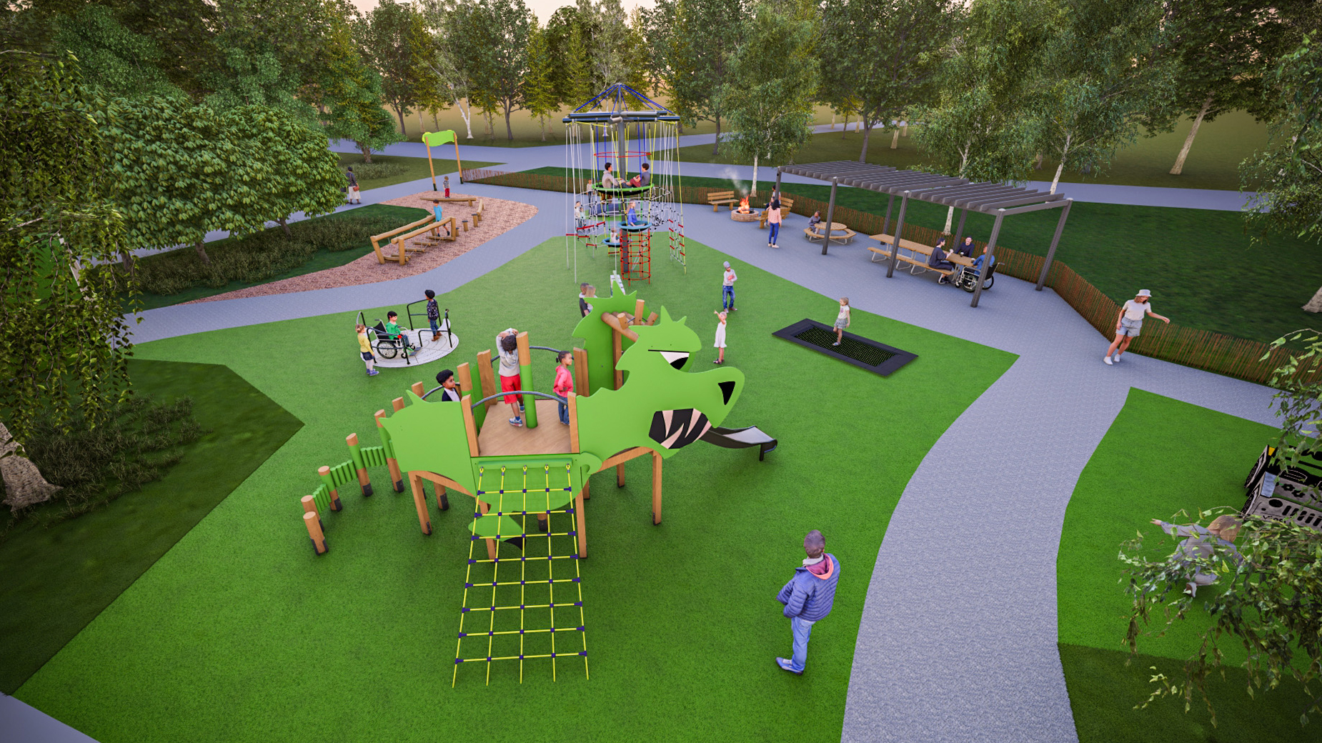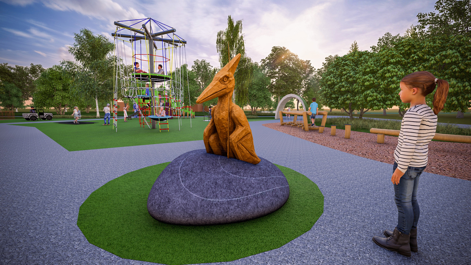 En helt ny lekutrustning kommer att byggas i Bäckparken som förvandlas och blir en dinosauriepark. Det blir ett besöksmål att längta efter för alla stora och små barn.